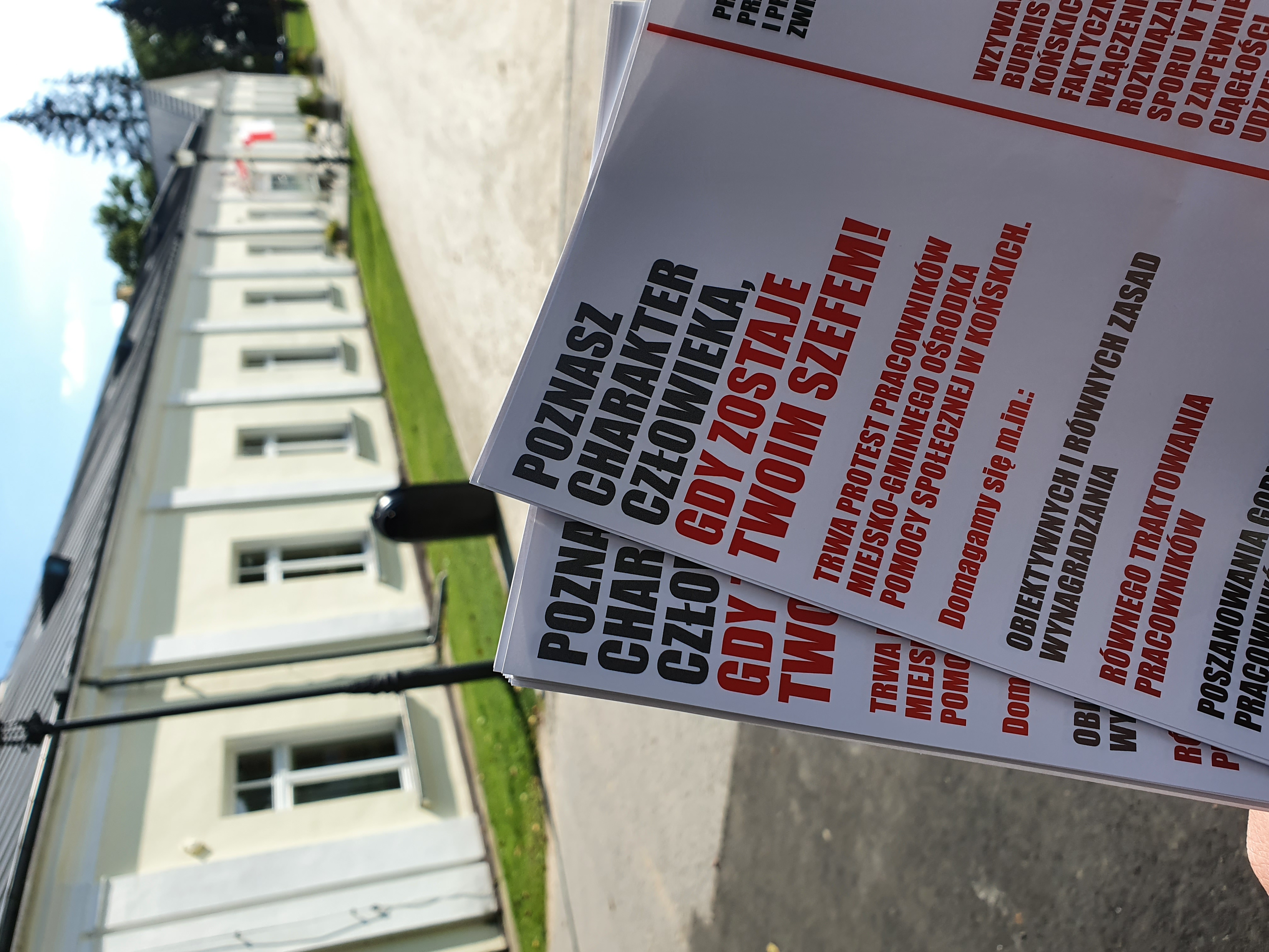 Dzisiejsza akcja ulotkowa jest też kolejną odsłoną trwającego protestu w MGOPS. Na elewacji budynku jednostki wcześniej umieszczono baner protestacyjny. Sukces dzisiejszej akcji spowodował, że ulotki będą ponownie rozdawane, a związkowcy już szykują nowe formy protestu. Do sprawy wrócimy.